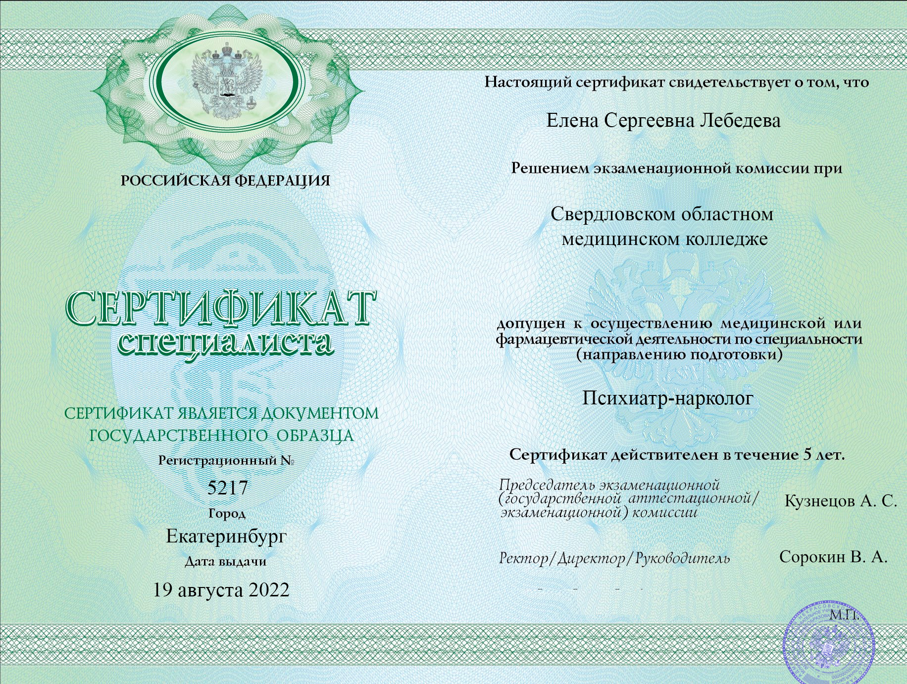 Елена Сергеевна Лебедева врач нарколог клиники доктора Стукаловой в Куйбышеве